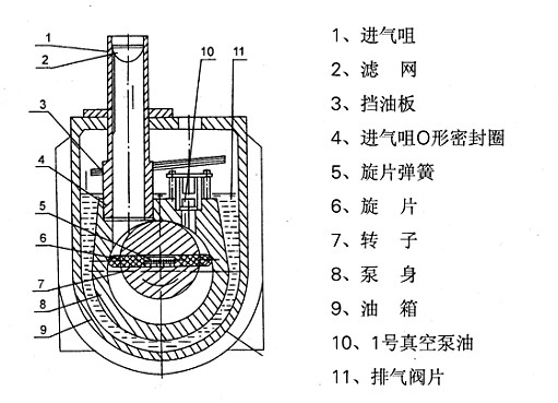 (8)旋片、泵身或泵蓋磨損,間隙過大,應(yīng)進行檢查,修整或調(diào)換。