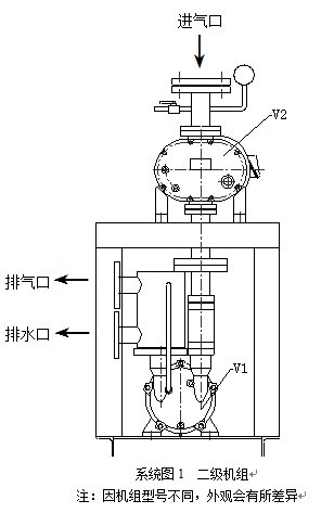 該真空機(jī)組的主泵為V2型羅茨真空泵,由V1型液環(huán)真空泵作為前級(jí)泵(如系統(tǒng)圖1),為保證各泵的正常運(yùn)轉(zhuǎn),應(yīng)按以下程序操作: